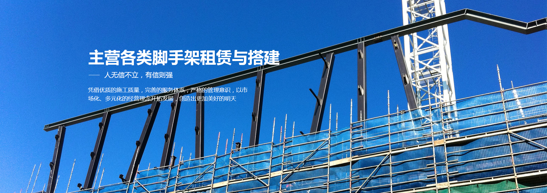 青島泰峰建筑工程安裝有限公司主營各類腳手架租賃、鋼管扣件租賃、移動(dòng)腳手架租賃建搭建及二手腳手架、鋼管扣件的回收銷售業(yè)務(wù)。公司實(shí)力雄厚,擁有鋼管約3000噸、扣件70萬只、鋼笆7萬多片塔吊、人貨電梯多臺(tái);總資產(chǎn)達(dá)到1000多萬元。是一家具有腳手架搭建、水電安裝專業(yè)承包施工資質(zhì)的企業(yè),并成為青島市五金協(xié)會(huì)的會(huì)員單位。且多次參與高層建筑、建筑裝修、玻璃幕墻、橋梁、隧道、地鐵、電廠維修施工、造船等行業(yè)的施工,并獲得施工單位的一致好評(píng)。 人無信不立,有信則強(qiáng)公司以“薄利多銷、服務(wù)取勝”為經(jīng)營宗旨...